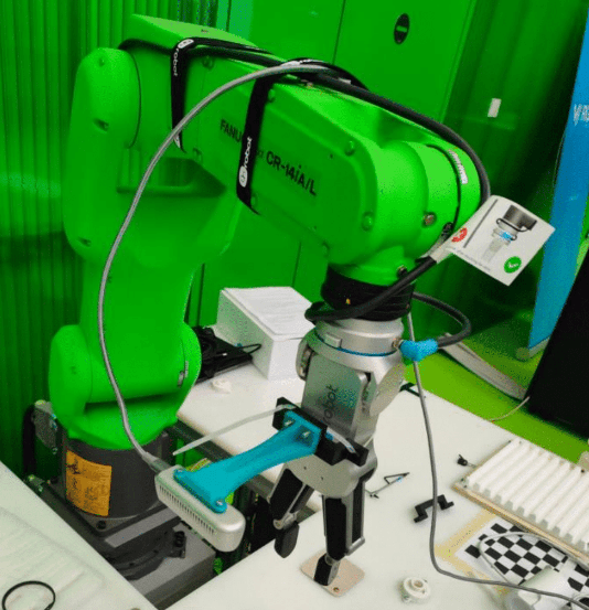 - one Fanuc CR-14iA/L with a payload of 14 kg, this cobot belongs to the first generation of collaborative robots of Fanuc family. It is equipped with a collaborative gripper provided by Schunk and is in charge of assembling and packaging tasks.