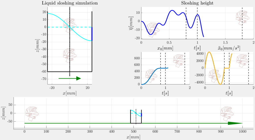 With these trajectories, it is possible to control the liquid free-surface motion and, eventually, to implement anti-spilling constraints.